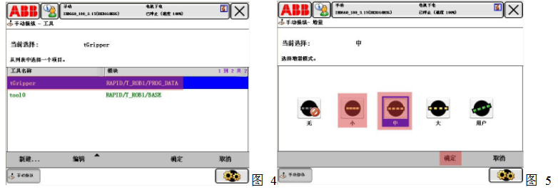 1> 左手持示教器,四指握住示教器使能開關(在示教器下方黑色膠皮里面)